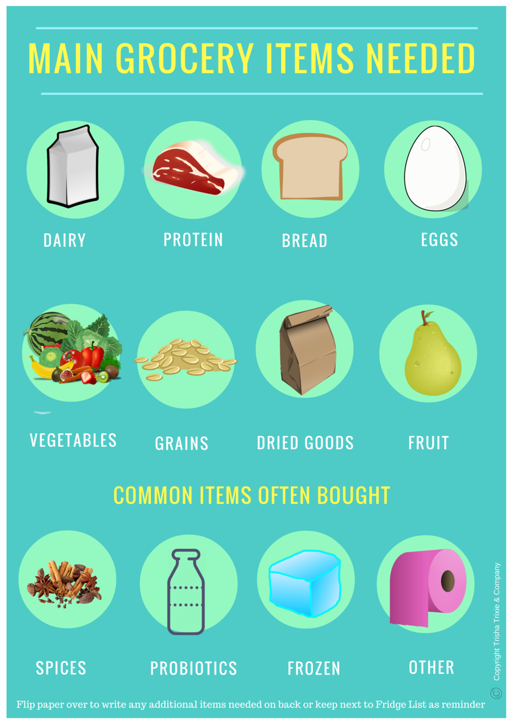 A FREE PRINTABLE I made to keep on your fridge. This is one I made for our fridge as a staple to use as a reminder of this things that we need the most. We keep this next to our Shopping list to remind us of the items we need to check for before going shopping!