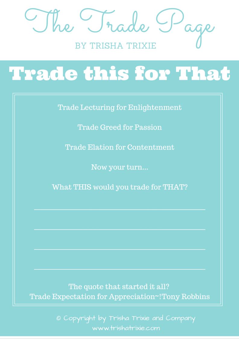 If you could trade one thing negative for something positive, what would you trade? What about if you could trade one thing positive for something even more positive? What is you could trade something even more positive for something supremely fabulous? What would you trade? Print out this FREE Printable to Trade THIS for THAT!